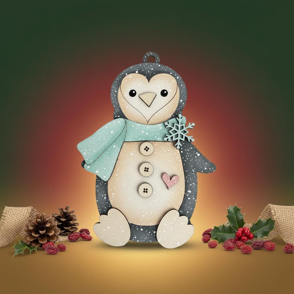 Create your own charming, hand-painted penguin ornament in a cozy, farmhouse winter style. Perfect for gifting, decorating, or adding a handmade touch to your tree.